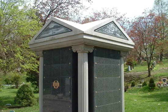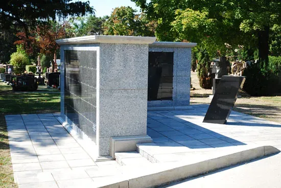Outdoor columbarium niche: The stone front allows for an inscription or bronze plaque.